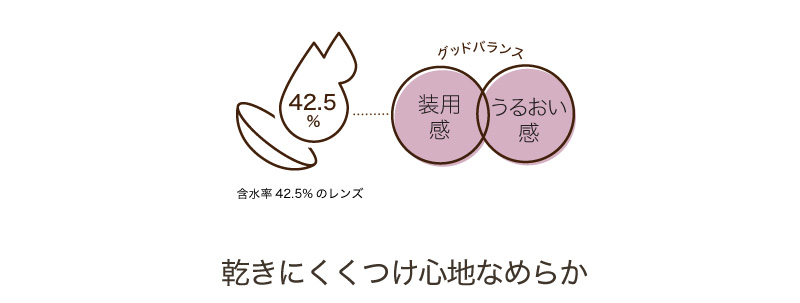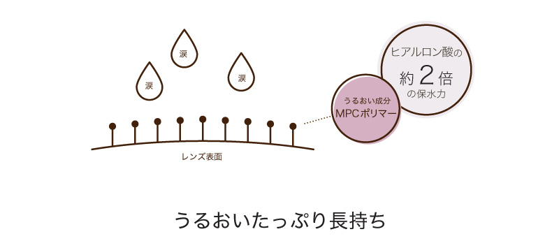 非イオン性の素材を使用しているので、 タンパク質などの汚れがつきにくく朝から晩まで快適な見え方を保ちます。