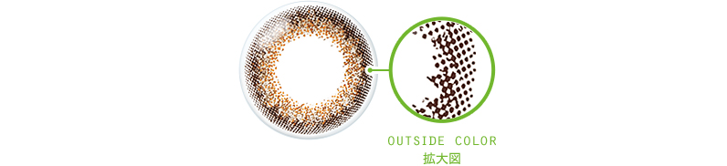外周部は大小のドットをランダムに配置することで、より自然な黒目のフチを再現。抜け感のある瞳を演出します。